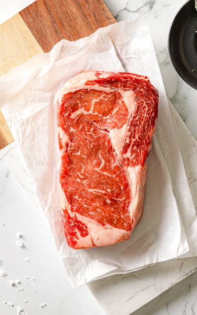 Ribeye is a rich and beefy cut that is best cooked over high heat. The easiest way to cook ribeye is on the grill, but you can also cook it in a pan or in the oven. The most important thing to remember when cooking ribeye is to use high heat so that the outside of the steak cooks quickly while the inside remains juicy and tender. Season with salt and pepper. Then use a stainless steel, carbon steel or cast iron pan with a light oil on high heat to quickly sear each side for approximately 1 to 2 minutes. Then transfer the entire pan into a pre-heated 350 F oven for 7 to 10 minutes for a perfect medium rare. After coming out of the oven, do not poke, cut or slice the steak until it has rested for at least 5 minutes so the juices have time to redistribute.