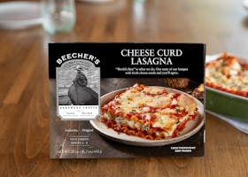 Tomatoes (tomatoes, tomato puree, sea salt, citric acid), cooked lasagna pasta (water, semolina [milled wheat], egg whites), ricotta cheese (pasteurized whey, pasteurized cream, vinegar, salt), cheese curds (pasteurized milk, culture, enzymes, salt), mozzarella cheese (cultured pasteurized milk, salt, enzymes), Flagship cheese (pasteurized milk, salt, culture, enzymes), spinach, water, extra virgin olive oil, olives (olives, water, sea salt), kale, garlic (garlic, water), sea salt, cane sugar, spices (oregano, thyme, black pepper, parsley, crushed red pepper), rice starch, cornstarch.