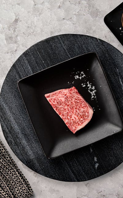 Japanese A5 Wagyu is as much an experience as it is a meal. To prepare this luxurious ingredient, first allow the meat to rest and come to room temperature before cooking. Lightly season with salt to help bring out the natural umami flavor. Alternatively, you can dip each bit in a fine sea salt of your choice before eating. Heat a smooth-surfaced pan such as a stainless steel pan to medium high heat. Thin slice the A5 Wagyu into individual, bite-sized portions. Place each piece on the pan without any cooking oil. A5 Wagyu has enough oil already to cook directly on a naked pan. Sear each size for approximately 2 minutes and remove. We recommend cooking each piece individually to share the experience with others. To elevate the experience, try a variety of fine sea salts, a high quality soy sauce or some wasabi. For a decadent expreince, try a bite of A5 Wagyu together with a piece of raw uni or some fine caviar. The interplay of flavors is extraordinary.