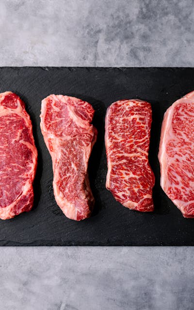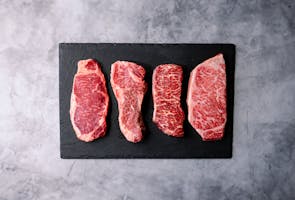 Explore a variety of premium New York Strip Steaks with this sampler bundle, perfect for steak enthusiasts looking to experience different flavors and qualities of beef. This selection features steaks from 100% grass-fed, grain-finished, and Wagyu sources, each offering a unique taste and texture. Ideal for tasting and comparing top-quality cuts.