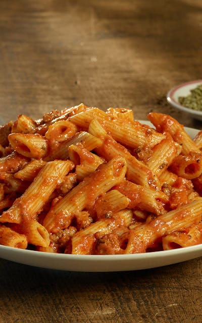 Cooked enriched penne rigate (water, durum wheat semolina, niacin, iron, thiamin mononitrate, riboflavin, folic acid), tomatoes (tomatoes, tomato puree, citric acid), milk (vitamin D3 added), water, cooked beef, cooked pork, cheddar cheese (pasteurized milk, salt, culture, enzymes), onion, extra virgin olive oil, carrots, celery, tomato paste, beef fat, salt, burgundy wine, dehydrated onion, spices (paprika, black pepper, oregano, fennel, parsley, thyme, crushed red pepper), cane sugar, dehydrated garlic, rice starch. Contains: Milk and Wheat