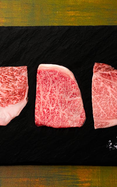 Immerse yourself in the rich flavors and unrivaled tenderness of three legendary Japanese Wagyu varieties: Olive Wagyu, Miyazaki Gyu, and Kagoshima Wagyu.