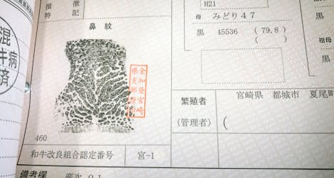 Besides the incredible marbling and exquisite flavor profile, another thing to admire about Japanese Wagyu is the system of 100% traceability for every animal. The nose print certificates, which track every animal's lineage, place of birth and other details, are the carefully-managed centerpiece of this system.